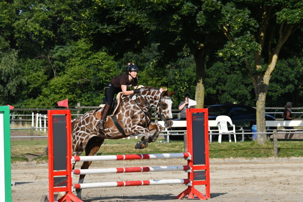 Bei der Springprüfung der Klasse A* mit Kostüm werden den Reitern und Reiterinnen keine Grenzen gesetzt. Zwischen Teufeln zu Marienkäfern und Fröschen gab es die verschiedensten Kreationen, jedoch erzeugte ein Kostüm bei den Zuschauern besondere Aufmerksamkeit und das war Carolin Mensing mit Redford. Als Affe und Giraffe verkleidet konnte sie die Herzen der Zuschauer für sich gewinnen und erzielte somit den Sieg bei der Bewertung des besten Kostüms. Nach jedem Starter in der Prüfung wurde anhand eines Dezibel Messgerät die Lautstärke der applaudierenden Zuschauer beurteilt. Hierbei konnte sich Carolin Mensing mit Redford ganz klar an die Spitze setzen mit sagenhaften 97 Dezibel, die durch die applaudierenden und jubelnden Zuschauer zustande gekommen sind.